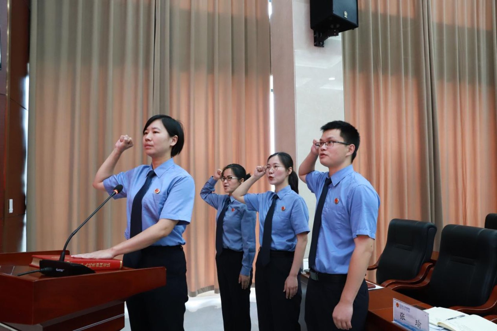 随后,在党组成员、副检察长周娇的领誓下,新任检委会委员张瑜、钟旷展、陈均匀向宪法宣誓。